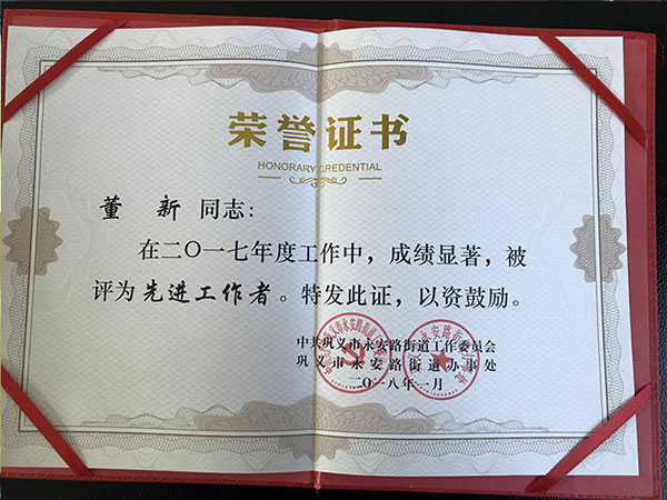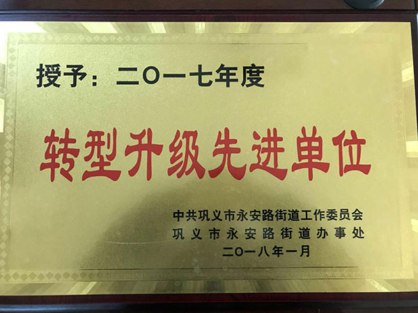 熱烈祝賀我公司榮獲鞏義市永安街道辦工業(yè)園區(qū)2017年度“轉(zhuǎn)型升級先進單位”、“納稅大戶”光榮稱號,公司董事長董新獲得“先進工作者”光榮稱號!